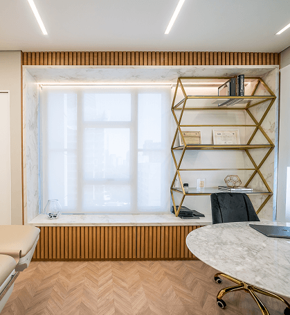 Criar um espaço de dermatologia que fugisse do estereótipo clínico frio e impessoal, sem perder a percepção de higiene, tecnologia e precisão. O desafio era equilibrar credibilidade médica com acolhimento emocional, em um ambiente que recebe pacientes em momentos de grande vulnerabilidade estética e emocional.